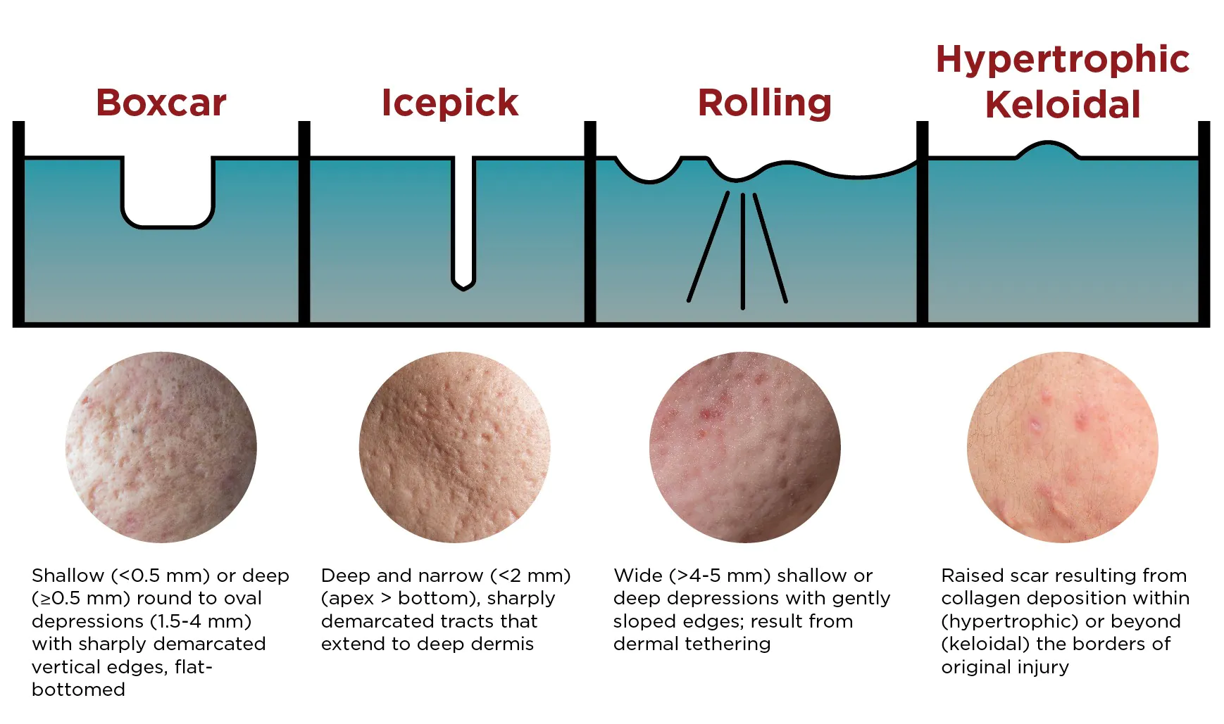 Ans: The most important thing is to determine the type of acne scar, because each type of scar is treated in different ways.