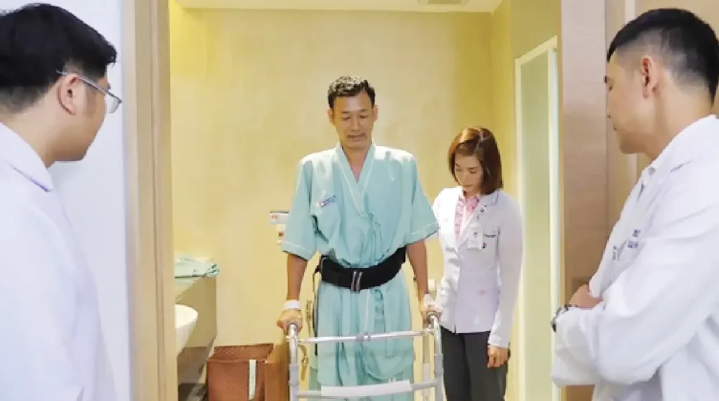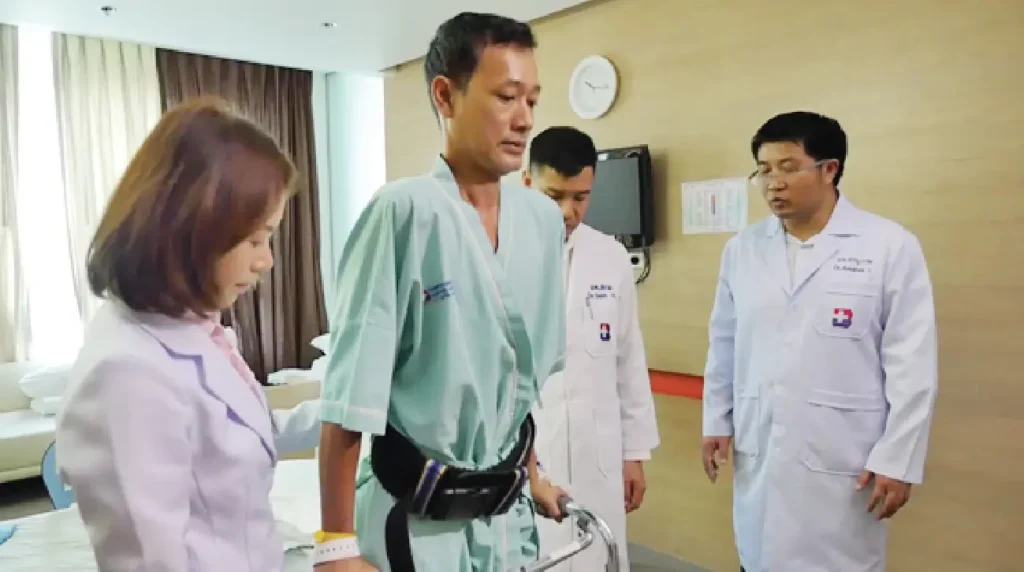 On Day 1, the doctor will visit the patient to assess the overall condition, review post-surgery radiographs and help the patient to sit, stand, and walk with the assistance of nurses, the physical team, and walking aids.