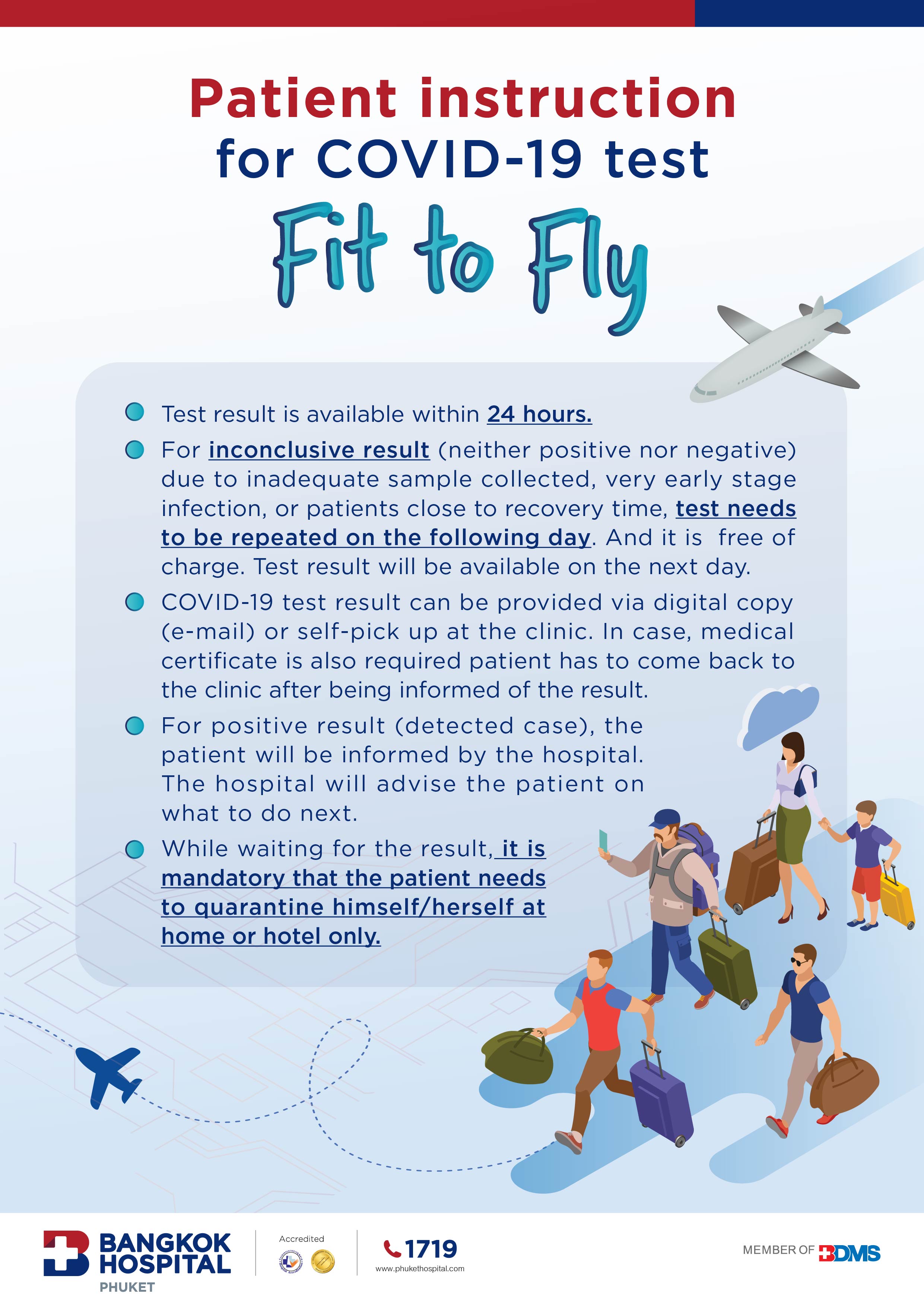 • As a fit-to-fly certificate is not issued after a COVID-19 test by default, you will be required to have an additional appointment with a doctor to get it in person.