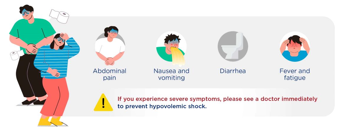 Since there is currently no specific antiviral medication for norovirus, treatment is symptomatic focusing on relieving symptoms. It is important to prevent dehydration by drinking oral rehydration solution (ORS) in order to replace lost water and electrolytes, eating soft diets such as soft-boiled rice, congee, bananas, and getting enough rest. If you experience severe symptoms such as severe vomiting or diarrhea, high fever, lethargy, or signs of dehydration, please seek medical attention immediately.