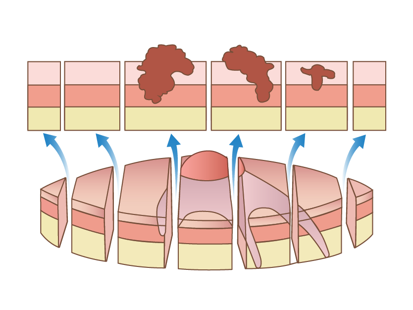 | Normal skin to be cut out | 1-2 mm margin | 4-6mm margin |