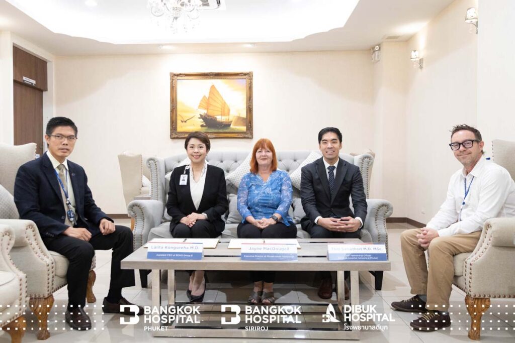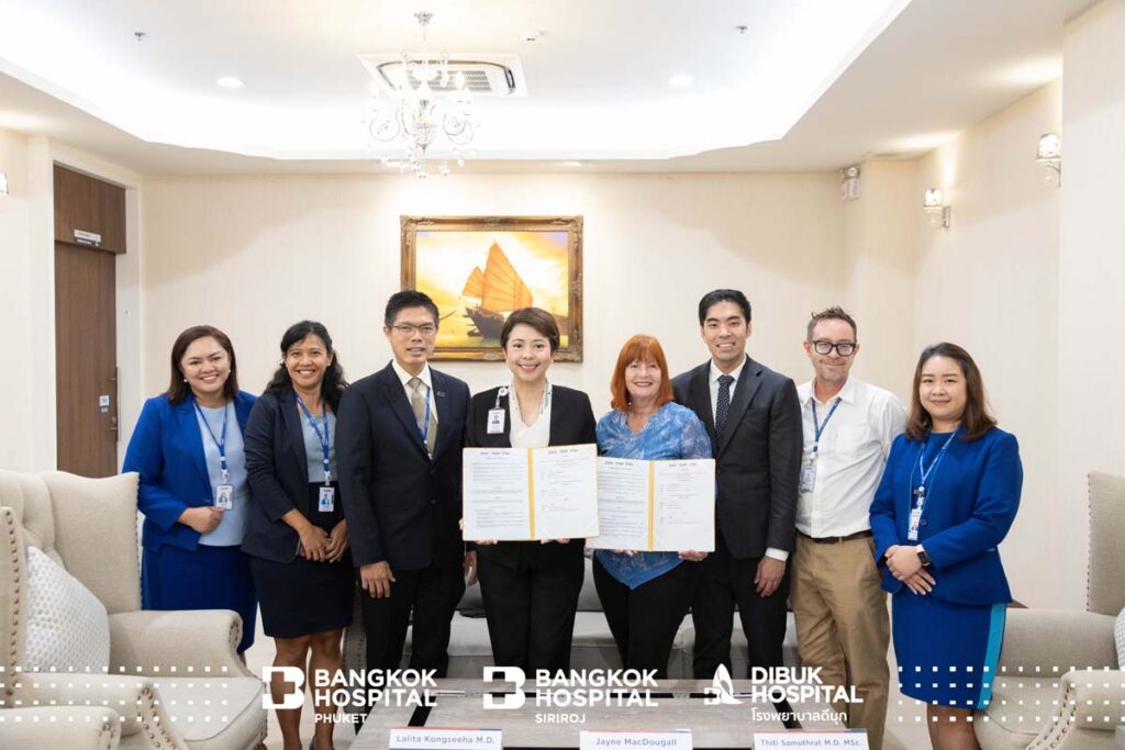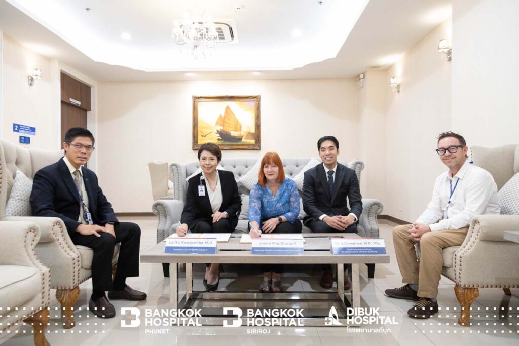 Меморандум был официально подписан Джейн Макдугалл, исполнительным директором Ассоциации отелей Пхукета; доктором Лалитой Конгсиха, заместителем генерального директора группы BDMS Group 6; доктором Тити Самутратом, директором по партнерству сети Bangkok Hospital на Пхукете и помощником директора больницы Bangkok Hospital Phuket; доктором Пирией Атисуком, директором больницы Bangkok Hospital Siriroj; а также доктором Наттавейтом Мигулом, директором Dibuk Hospital. Важную роль в достижении этого соглашения сыграла команда международного маркетинга под руководством Джеймса Кавуда и Танасикана Киттикуньотина.