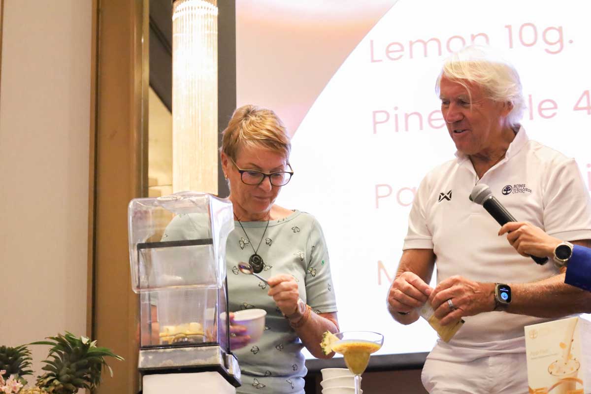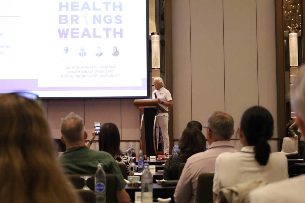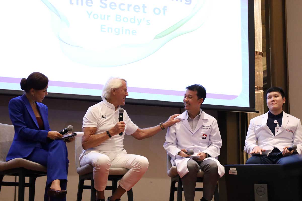доктору Йиржи Дворжаку, доктору Танавату Фонгсри, господину Намаджанге Сихаятре и доктору Тити Самутрату за глубокие и наглядные выступления о метаболическом здоровье и работе внутреннего двигателя организма. Доктор Тити Самутрат, специалист по геномной медицине и заместитель директора больницы, представил инновационный метод коррекции веса – препарат Liraglutide, разработанный для поддержки пациентов с выраженными метаболическими нарушениями.