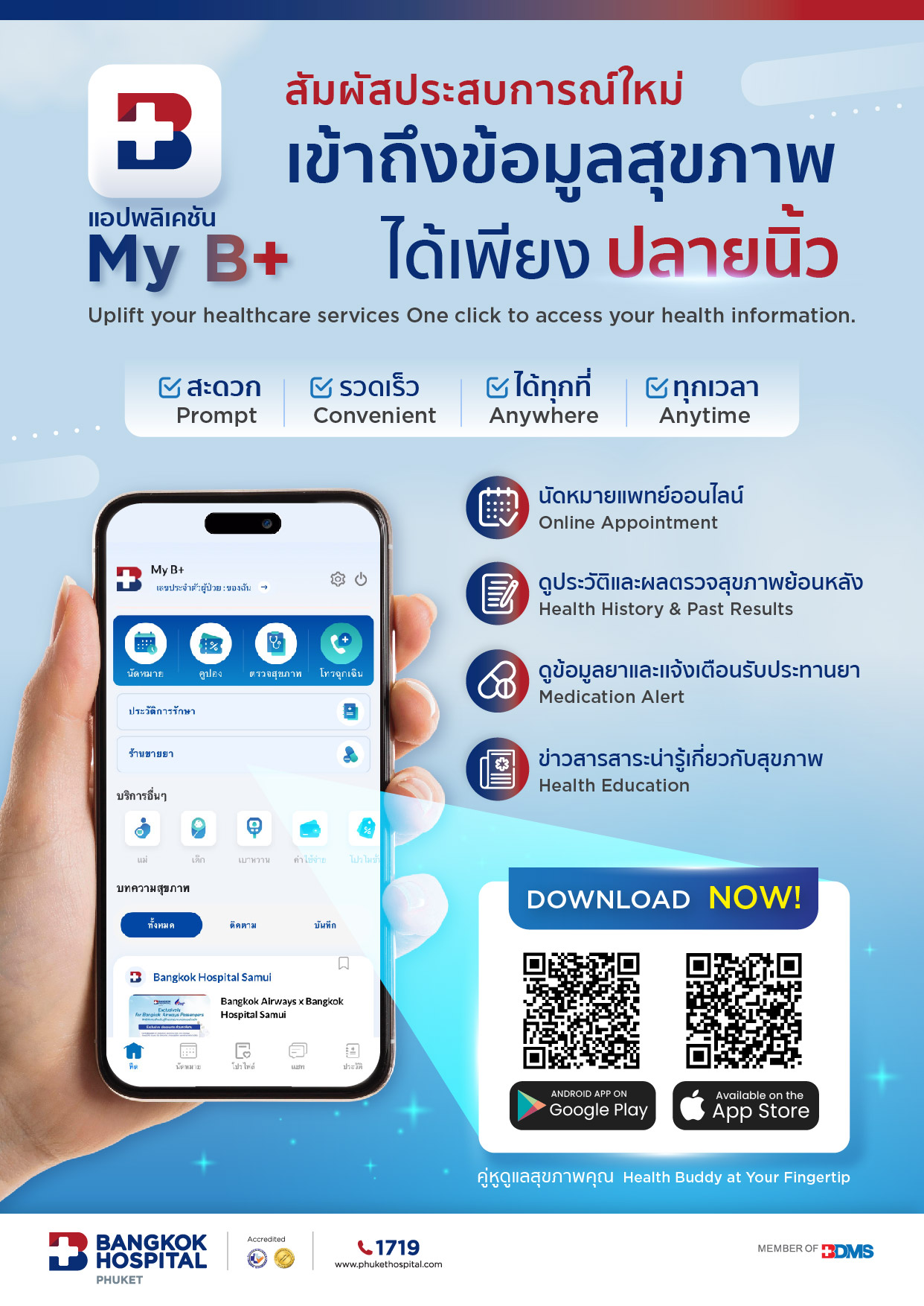 แอปพลิเคชัน My B+ สัมผัสประสบการณ์ใหม่ในการเข้าถึงข้อมูลสุขภาพ
