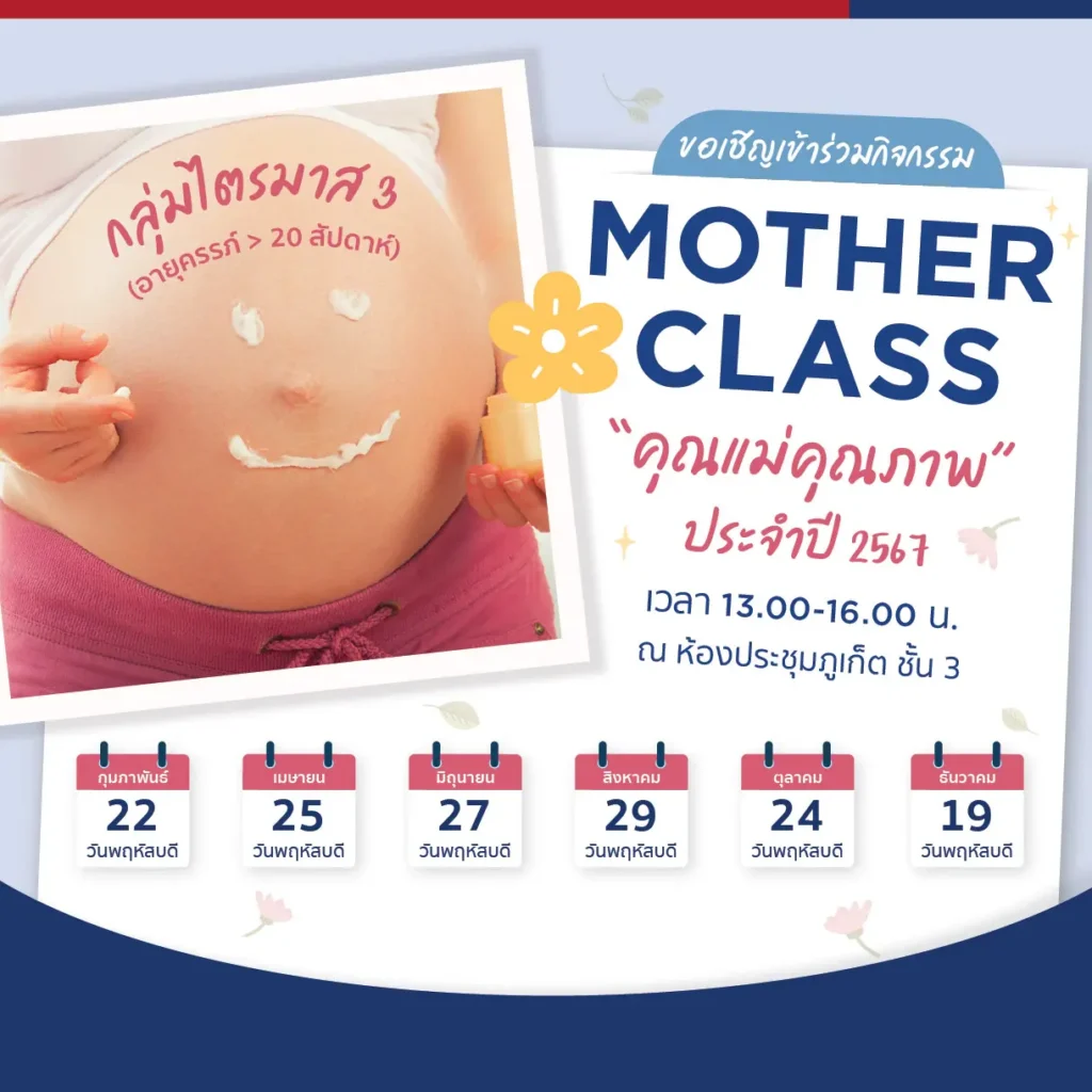 ตารางกิจกรรม Mother Class “คุณแม่คุณภาพ” ประจำปี 2567 กลุ่มไตรมาส 3 (อายุครรภ์ > 20 สัปดาห์) 13 มีนาคม 256714 มีนาคม 2024Thongchaiข่าวสารจากโรงพยาบาลกรุงเทพภูเก็ต, ข่าวกิจกรรม