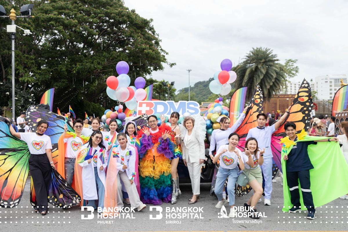 โรงพยาบาลในเครือกรุงเทพดุสิตเวชการ (BDMS) จังหวัดภูเก็ต ประกอบด้วย โรงพยาบาลกรุงเทพภูเก็ต โรงพยาบาลกรุงเทพสิริโรจน์ และโรงพยาบาลดีบุก นำโดย นายแพทย์พิริยะ อธิสุข ผู้อำนวยการโรงพยาบาลกรุงเทพสิริโรจน์ พร้อมด้วย คณะแพทย์ พยาบาลและเจ้าหน้าที่ เข้าร่วมแสดงความยินดี ในขบวนไพรด์พาเหรด “Discover Phuket PRIDE 2024 at Old Town” ในโอกาสเฉลิมฉลอง Pride Month เดือนแห่งความภาคภูมิใจ