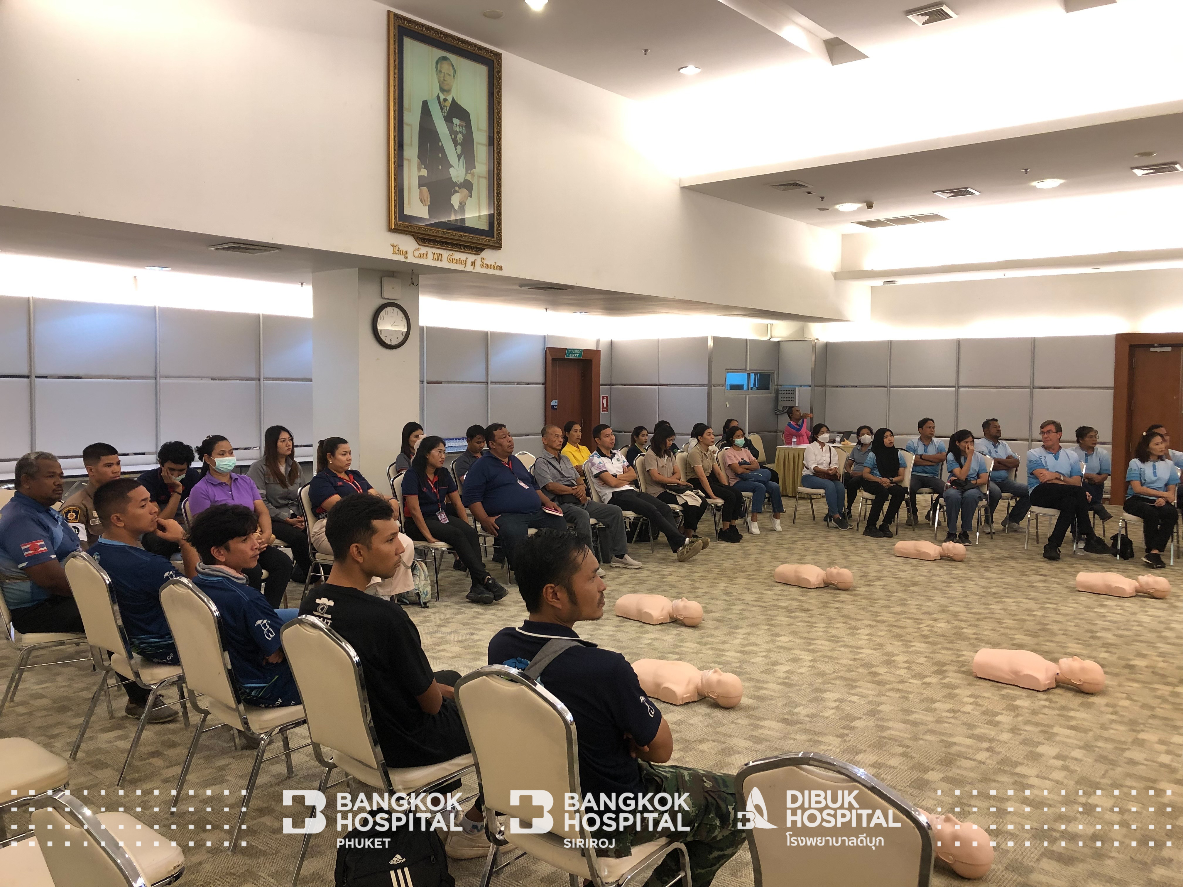 เครือโรงพยาบาลกรุงเทพจังหวัดภูเก็ต นำโดยศูนย์พัฒนาบุคลากรทางการแพทย์กลุ่มภาคใต้ จัดอบรมโครงการ “Heart to Heart ด้วยหัวใจที่แบ่งปัน” รุ่นที่ 2 ประจำปี 2567 ในหลักสูตรภาคประชาชน จำนวน 67 ท่าน มีระยะเวลาการเรียน 3 ชั่วโมง ทั้งภาคทฤษฎีและปฏิบัติ โดยมีสถานการณ์จำลอง เพื่อให้ผู้อบรมเกิดการเรียนรู้ มีความเข้าใจและสามารถนำไปใช้ได้จริงอย่างถูกต้อง และมีประสิทธิภาพก่อนนำส่งโรงพยาบาลให้ได้มากที่สุด ซึ่งโครงการมีเป้าหมายให้ 10% ของประชากรในจังหวัดภูเก็ต มีความรู้ในการ CPR และนำไปใช้ได้จริง เพื่อสนับสนุนแผนยุทธศาสตร์สู่การเป็น Medical and Wellness Destination ณ ห้องประชุม คิง คาร์ล กุสตาฟ โรงพยาบาลกรุงเทพภูเก็ต