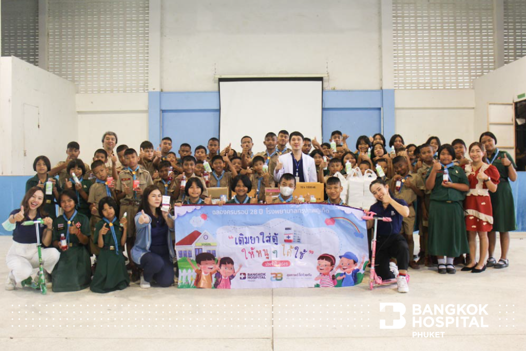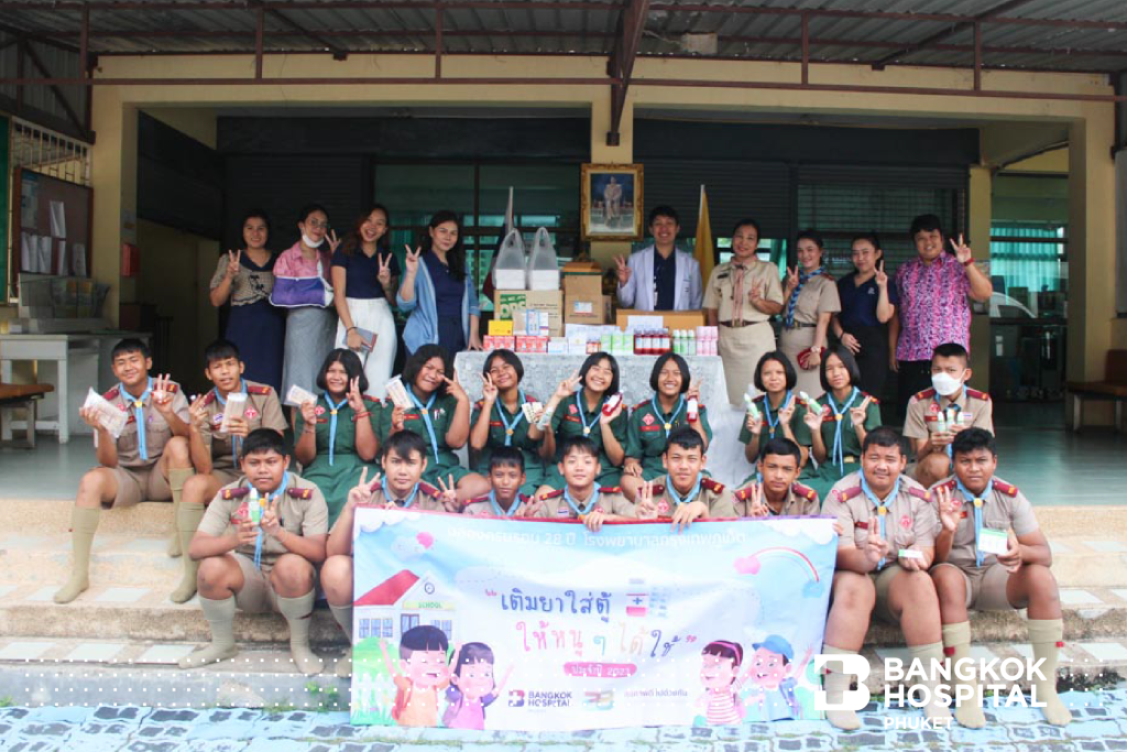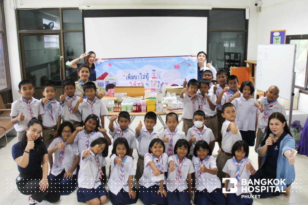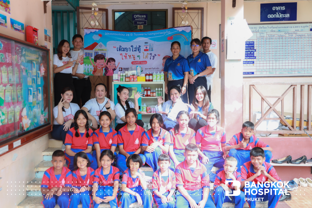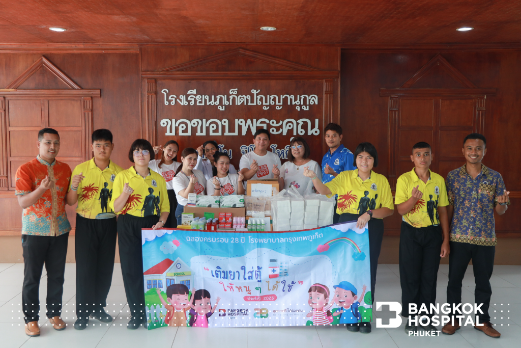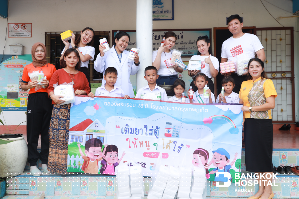 โรงพยาบาลกรุงเทพภูเก็ต ฉลองวาระครบรอบ 28 ปี จัดโครงการ เติมยาใส่ตู้ให้หนู ๆ ได้ใช้ โดยสนับสนุนยาสามัญและอุปกรณ์ปฐมพยาบาลเบื้องต้นแก่ นักเรียนโรงเรียนภาครัฐในพื้นที่จังหวัดภูเก็ต ร่วมส่งมอบความห่วงใยจากโรงพยาบาลสู่เด็ก ๆ โดยโรงเรียนที่ได้รับมอบประกอบด้วย โรงเรียนบ้านทุ่งคา โรงเรียนบ้านเกาะสิเหร่ โรงเรียนบ้านบางทอง โรงเรียนบ้านแหลมทราย โรงเรียนภูเก็ตปัญญานุกูล โรงเรียนบ้านโคกวัดใหม่ และโรงเรียนบ้านป่าครองชีพ เมื่อวันที่ 29-30 พฤศจิกายน 2566 ที่ผ่านมา