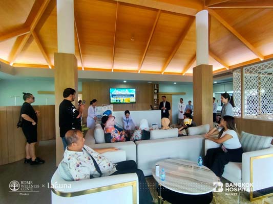 ในการเยี่ยมชมครั้งนี้ คณะผู้เข้าร่วมได้รับการต้อนรับอย่างอบอุ่นจาก นายแพทย์ฐิฏิ สมุทรรัตน์ Chief Partner Officer of the Bangkok Hospital Phuket network และผู้ช่วยผู้อำนวยการโรงพยาบาลกรุงเทพภูเก็ต และทีมการตลาดต่างประเทศ พร้อมทั้งได้รับโอกาสทดลองบริการด้านสุขภาพสุดพิเศษ ได้แก่ IV Drip Vitamin Booster เพื่อเสริมสร้างพลังงานและภูมิคุ้มกัน Oxygen Therapy เพื่อเพิ่มความสดชื่นและฟื้นฟูร่างกาย